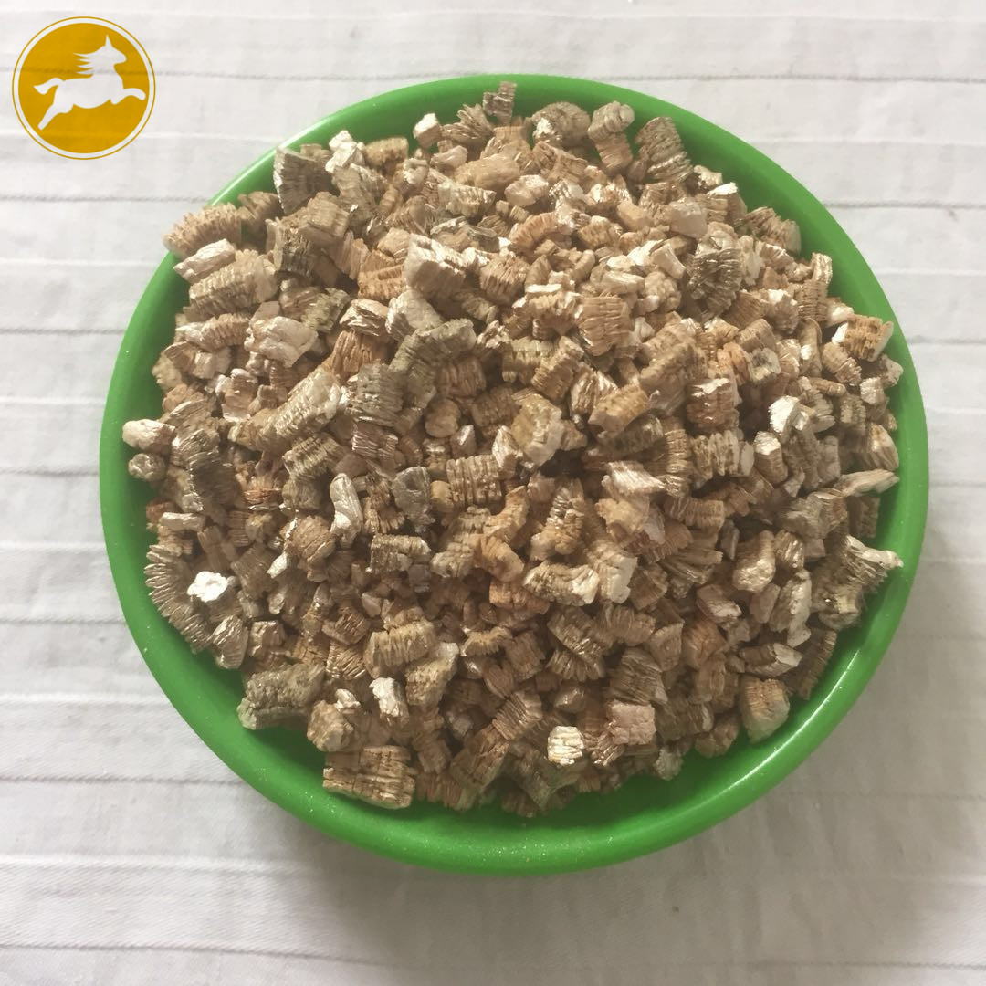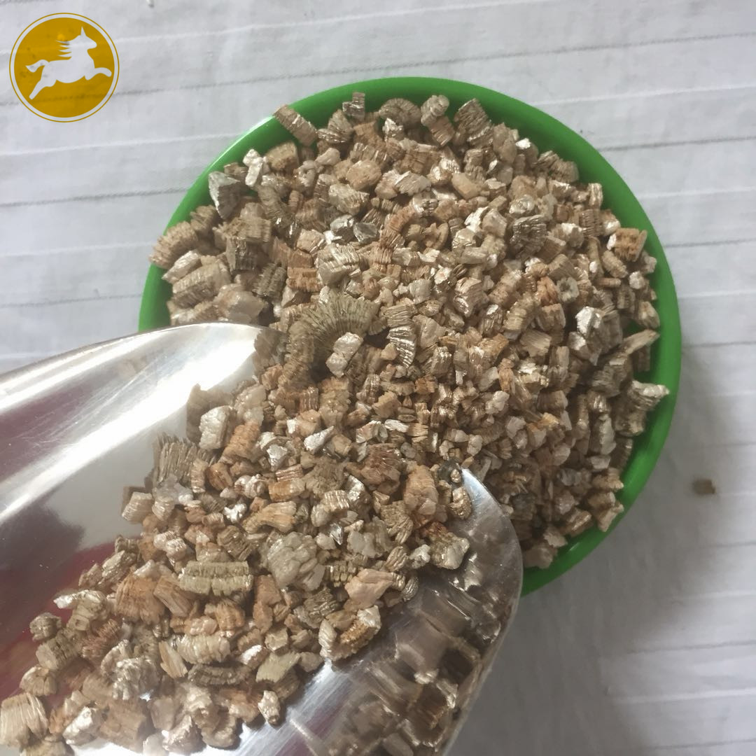 蛭石具有隔熱、耐凍、抗菌、防火、吸水、吸聲等優異性能,在800~1000℃下焙燒0.5~1.0分鐘,體積可迅速增大8~15倍,高達30倍。顏色變為金黃或銀白色,生成一種質地疏松的膨脹蛭石,但不耐酸,其介電特性也較差。